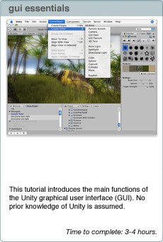 These tutorials will let you work with Unity while you follow along. They will give you hands-on experience with building real projects. For new users, it is recommended that you follow the GUI Essentials and Scripting Essentials tutorials first. After that, you can follow any of them. They are all in PDF format, so you can print them out and follow along or read them alongside Unity.